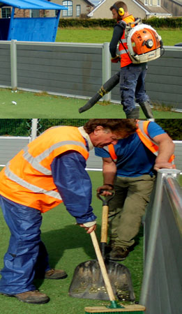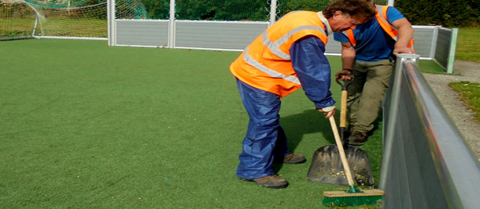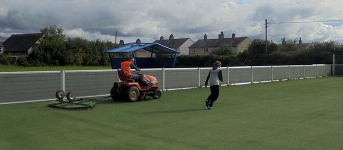 Here in Anglesey, eglas invests in equipment to service contracts to maintain artificial sports surfaces for the public sector. In our home community at Brynsiencyn and in our own time we are pleased to be able to utilise these resources as a service to benefit the community encouraging participation in sport and the active interaction of parents with young people.